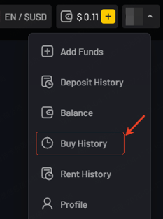 Step 3: Click your avatar in the top right corner, then click Buy History.